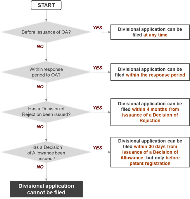 – The only situation where a divisional application can be filed after filing an appeal is when the JPO issues a new Office Action during Pre-Appeal Examination or Appeal Examination