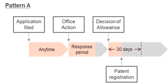 - Within 30 days from issuance of a Decision of Allowance (except after a Decision of Rejection has been issued), but only before patent registration (patent fee payment period)