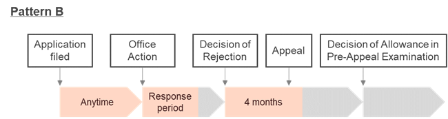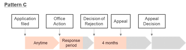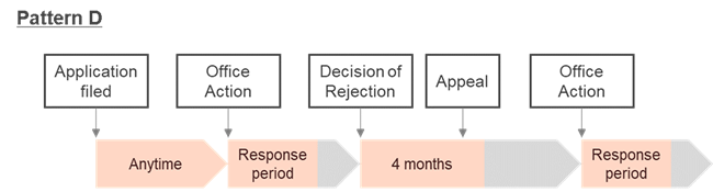On the other hand, Patterns B to D are cases where a Decision of Rejection is issued and the applicant files an appeal.